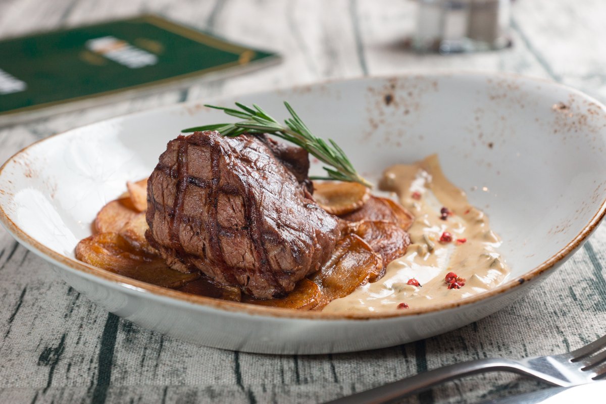 Грибной суп не заказывайте - картошка была сильно недоварена. К стейку просила перечный соус - не принесли.