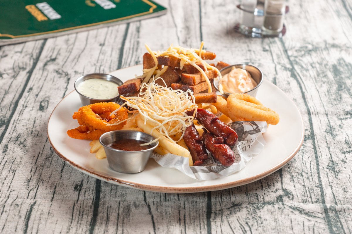 Прикольный локейшн. Огромный выбор пива. Дружелюбный веселый персонал. Порция гренок огромная. Втроем ели.