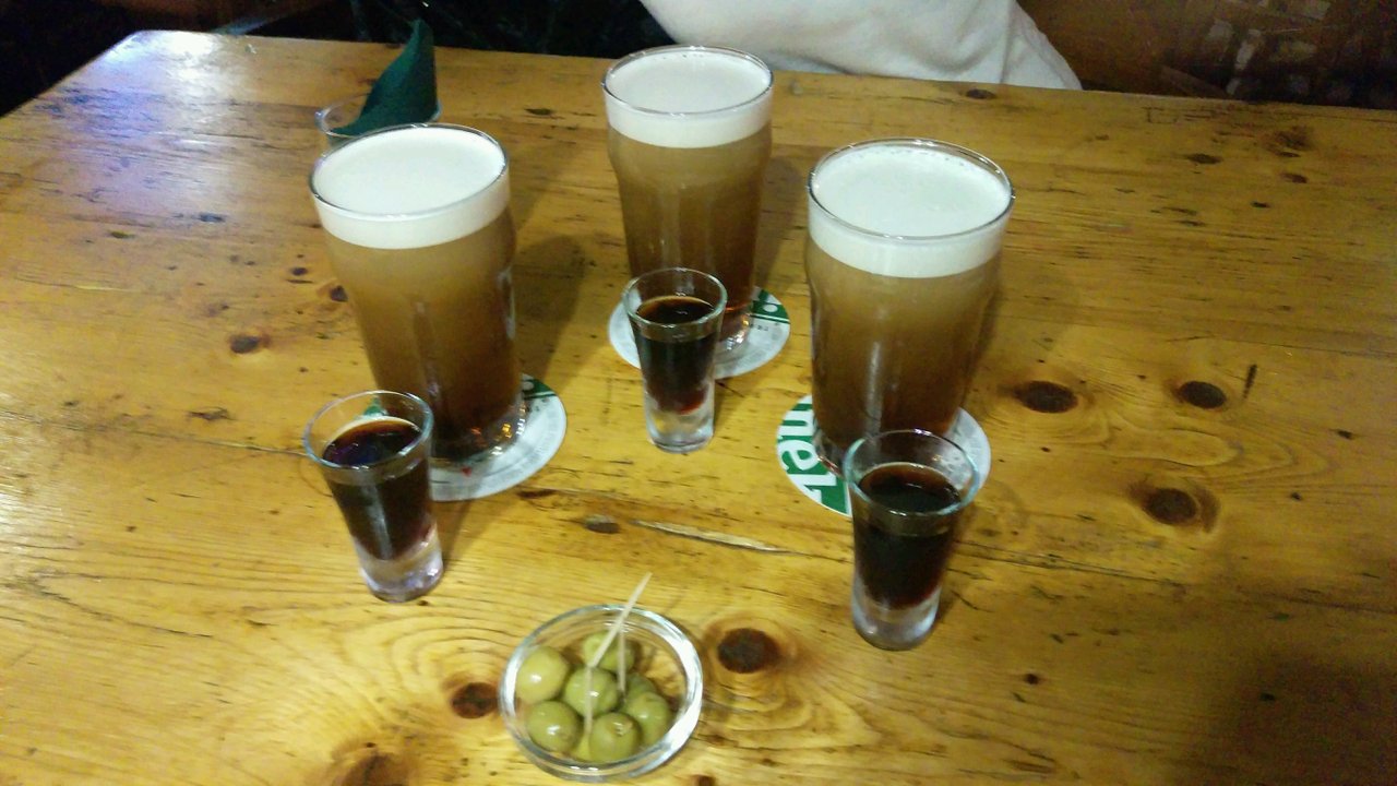 Ходим в этот паб часто. Это один из наших любимых пабов. В основном сидим на баре, общаемся с ребятами. Больше всего нравятся напитки: "Bowman stout" и некоторые другие напитки, из блюд мы заказываем "Креветки по-тайски", сырная закуска, а друзья наши любят колбаски и мясо. Тут всегда все свежее, нам очень нравится. В интерьере очень нравятся картинки, купюры, рисунки напротив бара, создается впечатление старого места, ну и вообще само помещение камерное, узкое и, когда много людей, создается классная атмосфера.