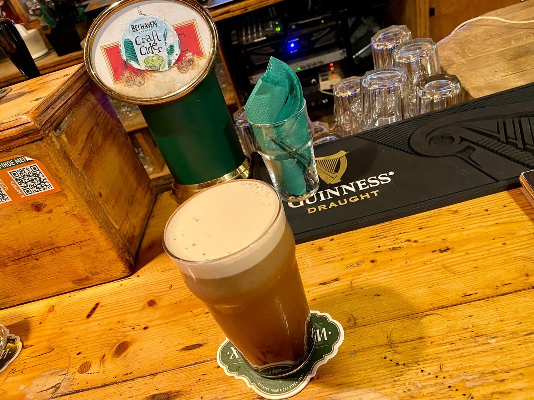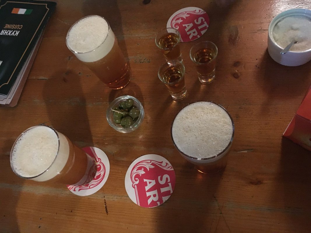 Известное место, ирландский паб в любимом городе, любим захаживать сюда с друзьями. Ламповая и уютная атмосфера для паба, иногда бывает громковато, все от посетителей конечно зависит. Обычно заказываем салаты и стейки, вполне достойная готовка. Я лично обожаю ассорти из сыровяленых деликатесов, очень необычные вкусовые ощущения.