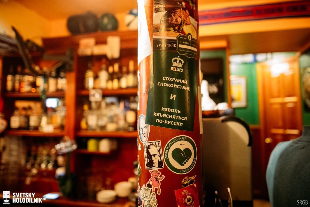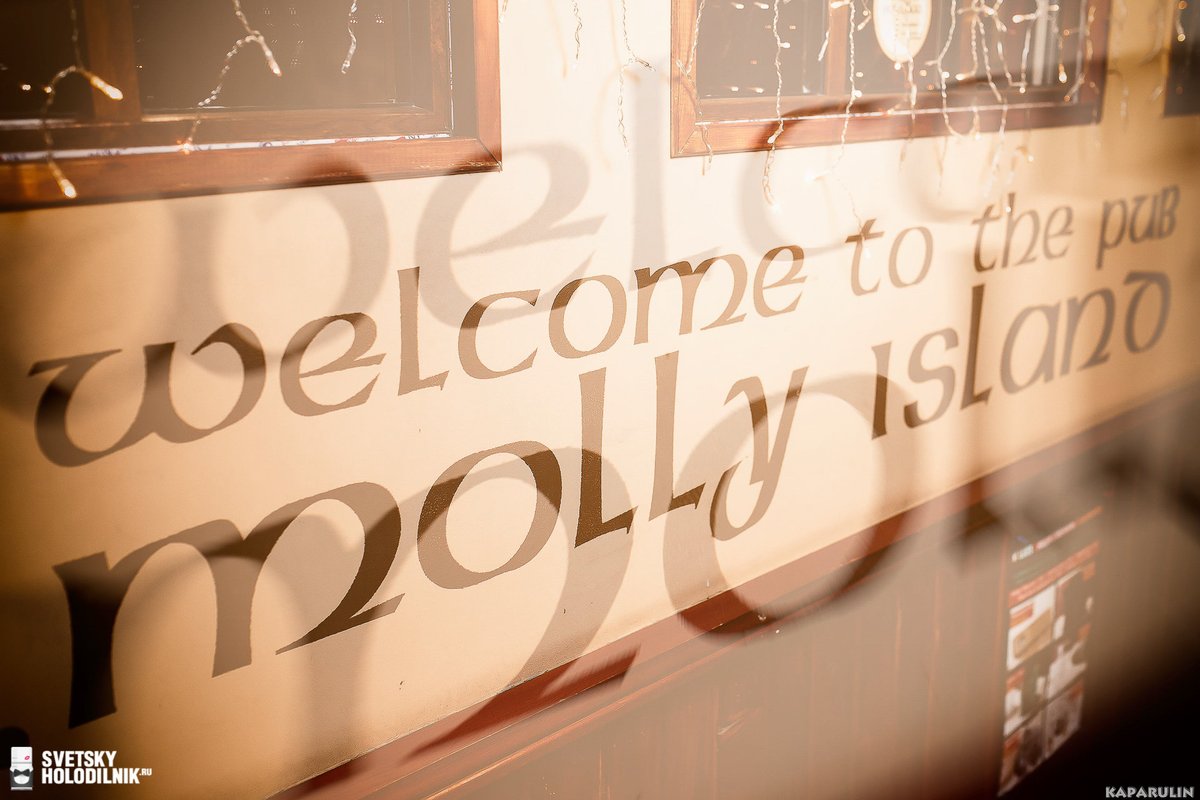 Мы старые друзья паба Molly Island, очень его любим и всегда с ними. Мне нравится этот паб тем, что он домашний, семейный, тёплый и уютный, да и находится близко к дому. Обслуживание здесь шикарное и крутое, бармены молодцы, а официанты просто умнички! Повара шикардос, кухня классная и вкусная. Я всем рекомендую это заведение, даже в это посещение, когда с друзьями решали, куда пойти, я предложил Molly. Я люблю здесь пиво «Grisette» и «Limburgse». Хотелось бы, чтобы появилось темное разливное пиво «Bourgogne des Flandres». Здесь есть только бутылочное, а я люблю разливное, если оно появится, то я буду очень этому рад. А ещё мне нравятся здесь жаренные в панировке креветки, острая курочка по-итальянски, её подают с маленькими картофельными драниками. Эти блюда очень вкусные. Ну и, конечно, здесь бомбические супы, а именно солянка и борщ, именно то, что надо! Ради этого паба я готов на всё! У нас есть три друга - армия, флот и Molly Island!