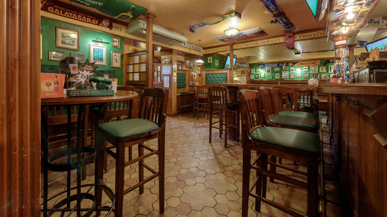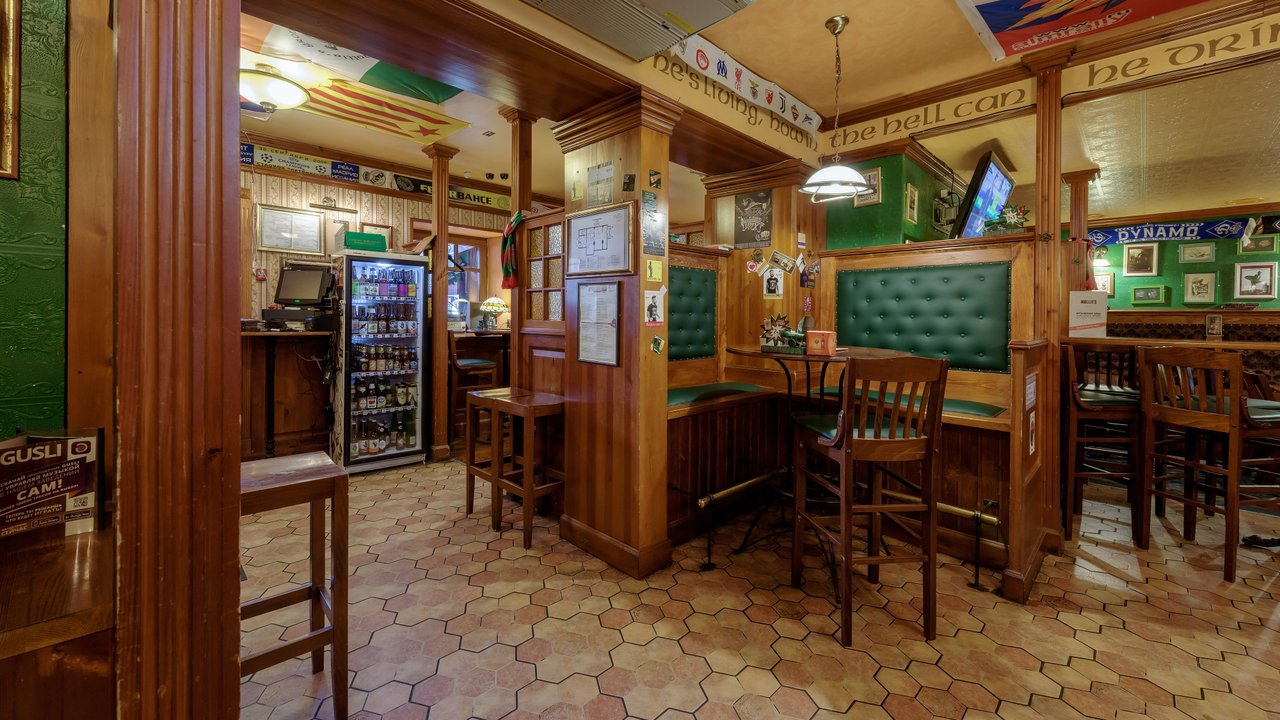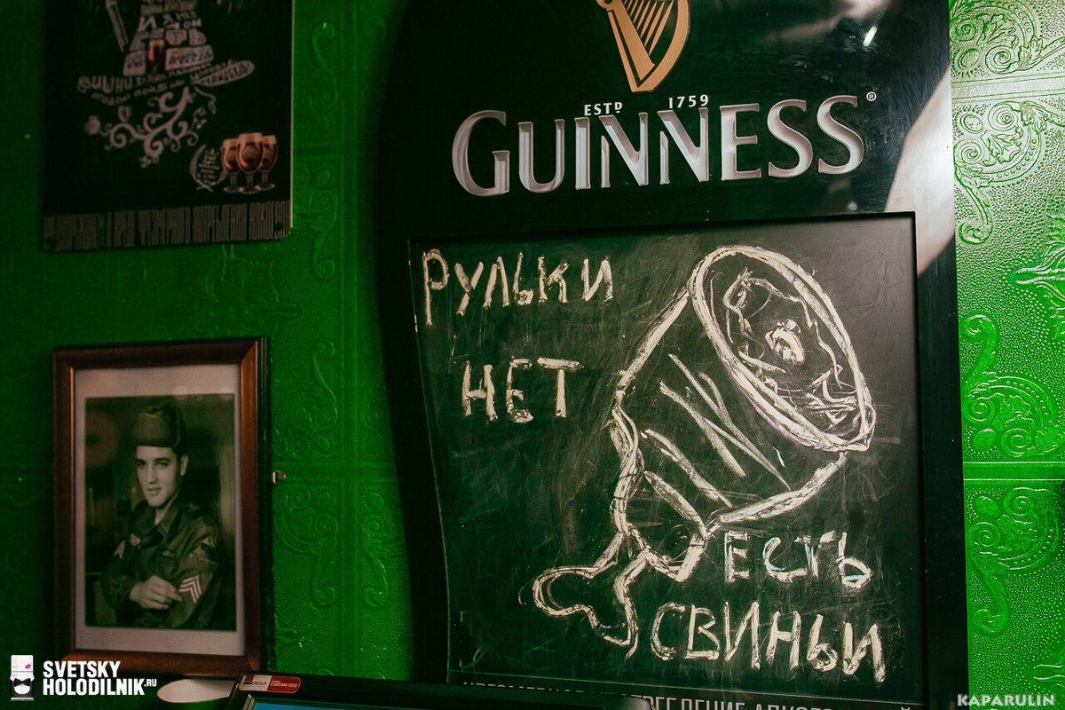 Бар отличный, я хожу в него давно. Персонал здесь отличный. Ребята молодцы, общительные, отзывчивые. В основном мне нравится обслуживание и еда. Еда вкусная, напитки прекрасные. Из напитков мне нравится виски, пиво, всевозможные коктейли и шотики. Я любитель таких вещей, бармен замечательно смешивает, знает массу всевозможных коктейлей. Из еды мне нравится стейк, в основном я кушаю здесь мясо. Мясо приготовлено замечательно. Пиццу брал пару раз, мне тоже понравилось. В заведении классический интерьер ирландского бара, атмосфера домашняя, можно посидеть и за барной стойкой, и за столиком. Куда не сядешь, везде замечательно.