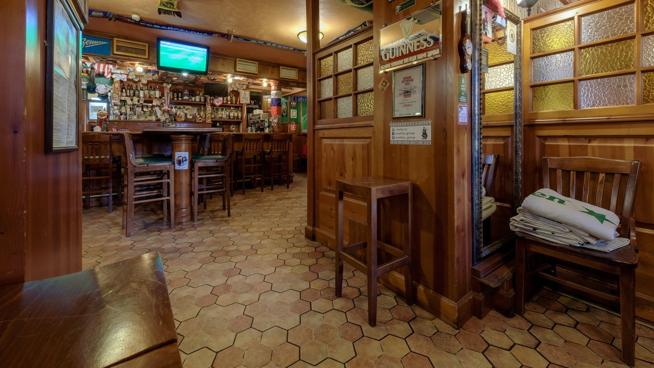Мы постоянные клиенты этого паба. Очень нравится удобное для нас расположение, мы просто живем в этом же доме. Этим посещением я тоже остался доволен. Здесь работает хороший коллектив и приятные официанты. Меню в этом пабе отличное, отдельно хотелось бы выделить буррито, мне оно очень нравится. Бармен тоже отлично выполняет свою работу. Здесь делают свои настойки, бармен прекрасно их мешает, они получаются очень хорошие. В других пабах этих настоек либо нет совсем, либо мало, либо делают не так хорошо, как здесь. Чистота в заведении соблюдается, столы всегда протирают, да и интерьер хороший. Я был во многих пабах сети Molly, но на Морской набережной мне нравится больше всего.