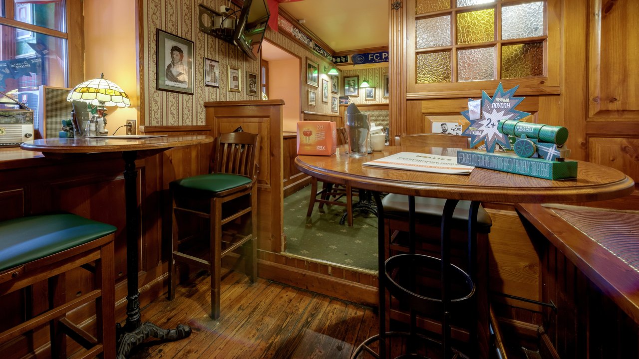 Мы постоянные клиенты данного бара, посещаем каждую неделю. Мне очень нравится качественное обслуживание и прекрасное отношение персонала к посетителям. Мне кажется, что для всех найдётся доброе слово от официантов, всегда радушны, приветливы и во всём стараются помочь. В баре разнообразный выбор напитков, вкусная кухня. Я особенно люблю гренки с чесноком и сыром. Очень вкусные, нигде таких не пробовал. Также мне нравится приятная музыка и атмосфера. Такое ощущение, что где-то в Англии или Ирландии находишься, настолько здесь интересный и хорошо продуманный интерьер. Цены приемлемые. Это наше любимое место, рекомендую, однозначно!