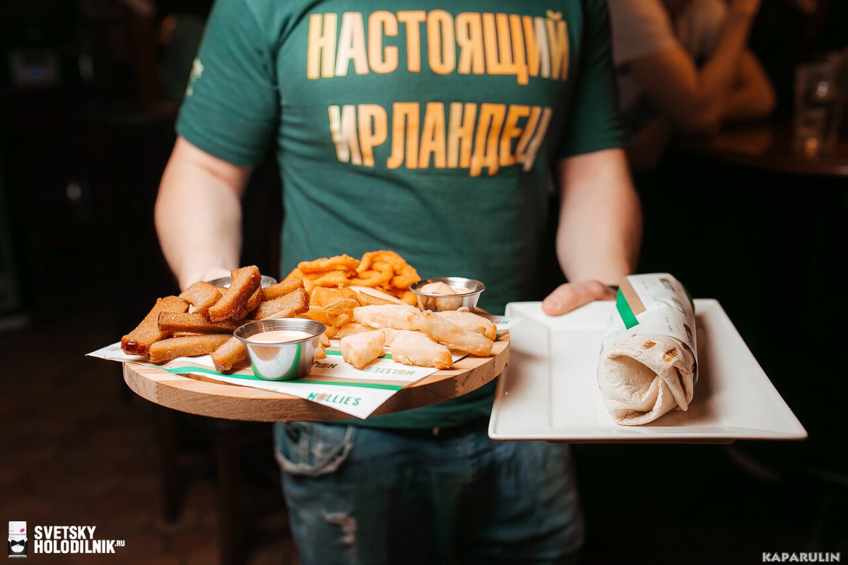 Я особенно люблю пиво! Здесь пиво хорошего качества, большой ассортимент. Какого-то определенного сорта я не пью, всегда по-разному - могу попробовать вишенку, могу попить темное или полутемный эль. Обслуживание отличное, с персоналом дружу, мои лучшие друзья. Заказы подают быстро, пиво наливают сразу. Молодцы! В баре обстановка в ирландском стиле, везде висят флаги, футболочки, все комфортно и уютно. Музыка также нравится, даже можно попросить ребят поставить что-то определенное. Цены нормальные. Особенно нравится фишка с приложением, можно сходить в бар 3-4 раза и на 5-ый раз точно получить бонус. Мне все нравится!