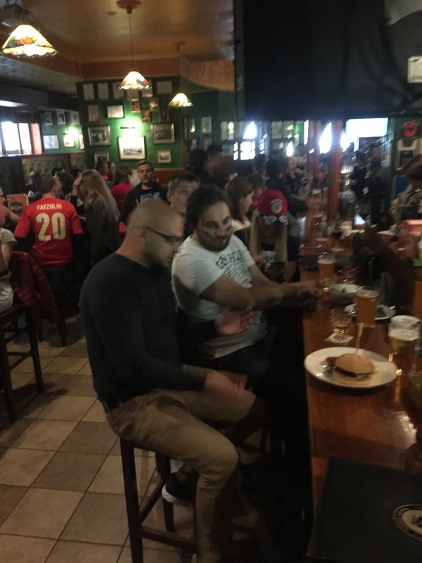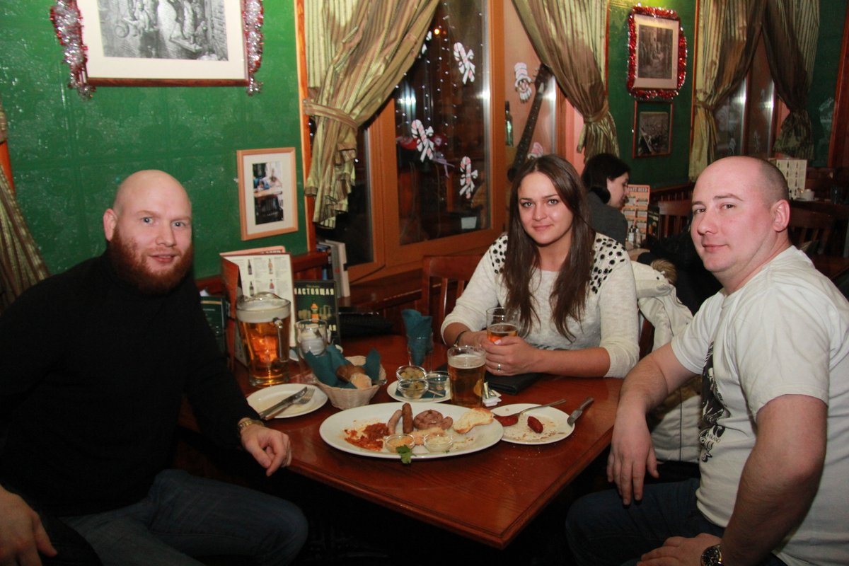 Мы давно ходим сюда. Заранее заказываем определенный столик. Тот зал, где мы сидим, делится на два зала, с правой стороны играет громко музыка, а вот с левой стороны народа меньше ходит и музыка не орет, все так спокойно. Также в основном нас одни и те же официанты обслуживают. В прошлый раз была Настя. Вообще, все сотрудники профессионалы, добродушны. Относительно кухни и бара, всегда по-разному заказываем. Я в этот раз брал селедку и орешки, пиво. Цены, так скажем - это же паб, сервис и качество предоставляют, поэтому тут без иллюзий. Кусаются цены, но мы понимаем, что к чему и за что платим.