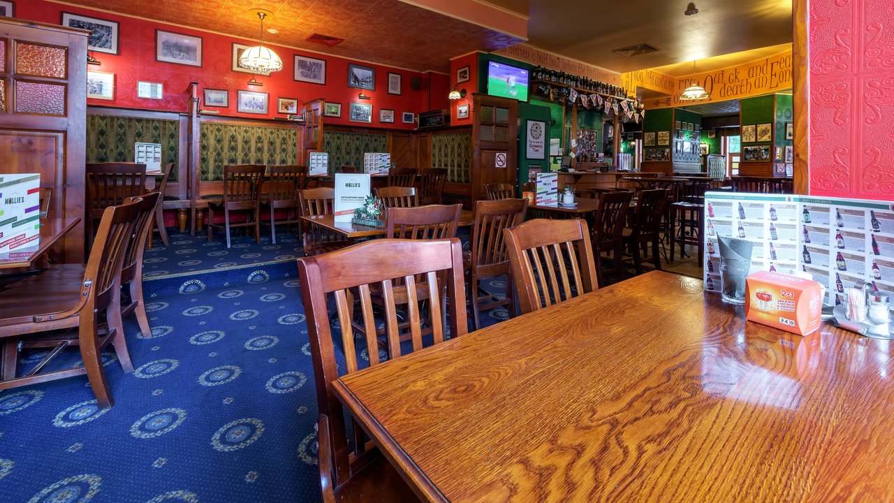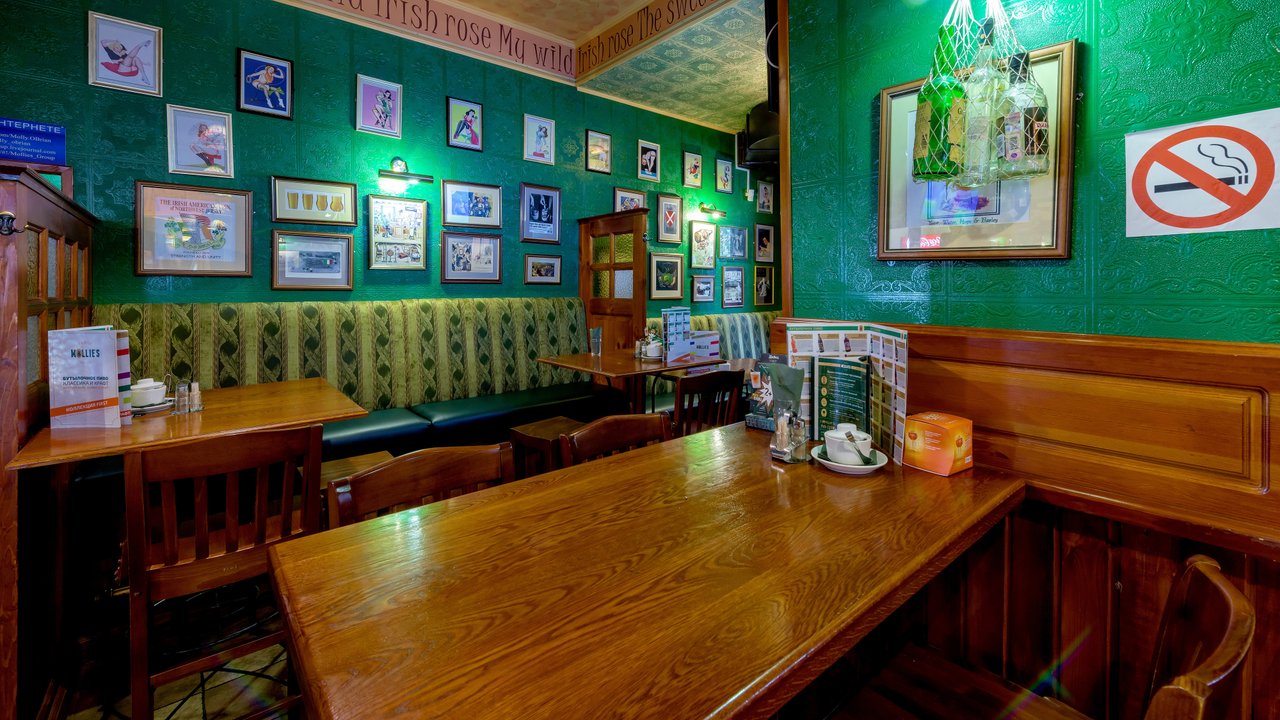В этот раз не удалось посетить паб, но мы часто сюда ходим. Впечатления после посещения остаются только положительные, большой выбор пива и всегда можно замечательно провести время. Вкусная еда и напитки, приветливый персонал. Интерьер это просто "старый добрый Молли". Особенно мне нравится музыкальное оформление, репертуар и громкость, всегда то, что надо! Музыка не мешает приятному общению.