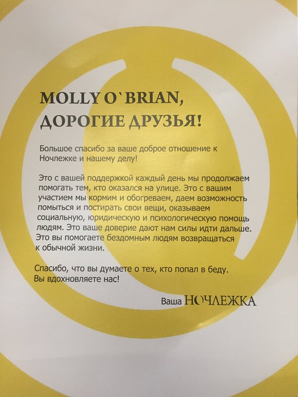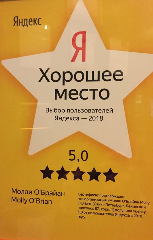 В пабе "Molly O'Brian", который на Ленинском проспекте, иногда бываю. Я позвонила в этот паб, чтобы забронировать столик, мне сказали, что приходим и по факту заказываем. Когда я пришла туда, меня там ждала компания, поэтому я сразу увидела где столик. Из еды тогда ничего не заказывала. В этом пабе прекрасное обслуживание, приличный интерьер, цены не смущают. Раньше приглашали музыкантов, в связи с пандемией перестали это делать, хотелось бы снова их услышать.