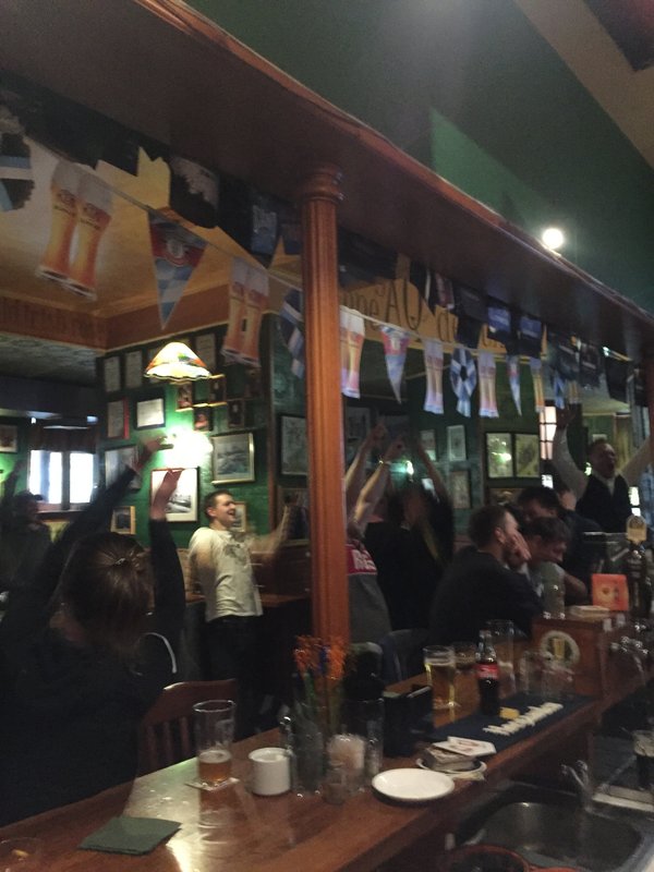 Классное заведение! Намного больше по площади, чем на Малой Конюшенной. Бар рядом с домом находится, поэтому частенько сюда ходим с супругой. Приятный интерьер и обслуживание отличное. Это наше любимое место, не первый год сюда ходим. Очень теплые и приятные тона в интерьере, много фишек индивидуальных. Я, например, заметил для себя редкий зенитовский шарф, висящий под потолком. Много мелочей можно заметить отличных. Я всегда беру себе пиво перцовое бутылочное, а жена вино или вишневый эль, крепленный. Буквально недавно эль заменили на что-то другое, но все равно по вкусу просто супер! Обслуживание очень быстрое. Если именно наш официант не успевает, то обязательно второй официант с этого зала все принесет мне, он знает, что я заказал. Информацией сотрудники обмениваются шикарно. Персонал гостеприимный и дружелюбный.