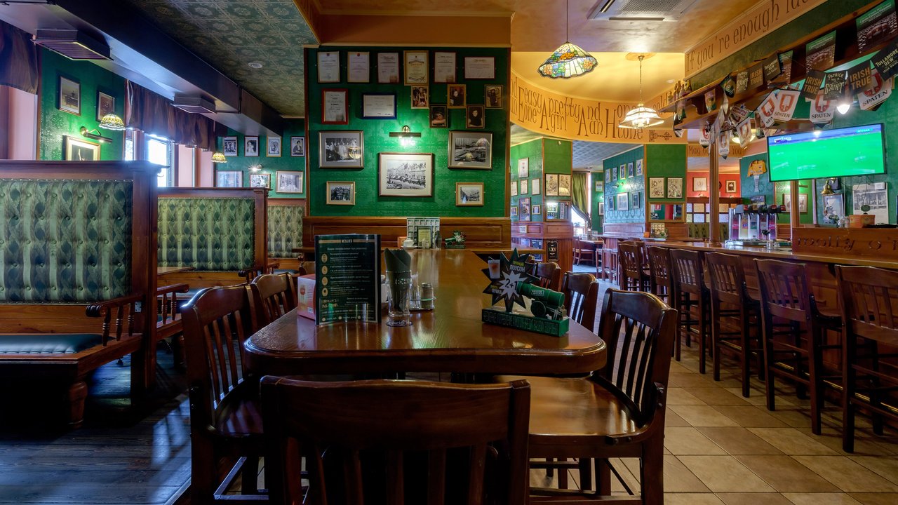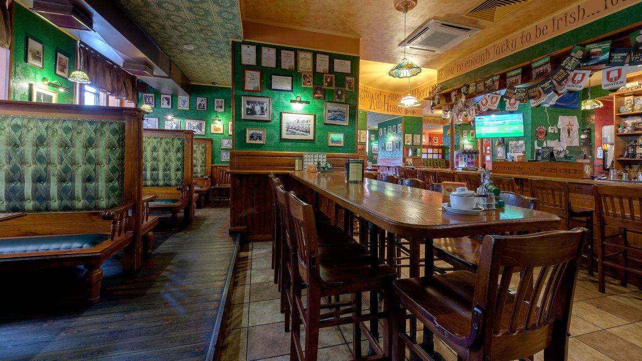 Мне всё очень понравилось, хорошее обслуживание, адекватные цены, вкусная кухня. Я только начал посещать это заведение. Из блюд мне понравились стейк Стерн, салат Цезарь с курицей и салат с говядиной, для меня главное сытность, напитки алкогольные пили мои гости, я не могу их оценить. Официант дал адекватные рекомендации по блюдам, и, в принципе, работал шустро, посуды грязной вообще не было на столе, сразу всё убиралось. Знакомые пригласили в это место, распробовали кухню в первый раз, а во второй - я пошёл уже лично с семьей. Фишки в интерьере классные, передан ирландский дух. В заведении было чисто, работа администраторов хорошая, единственное, что в понедельник было шумно у бара, но это нормально.